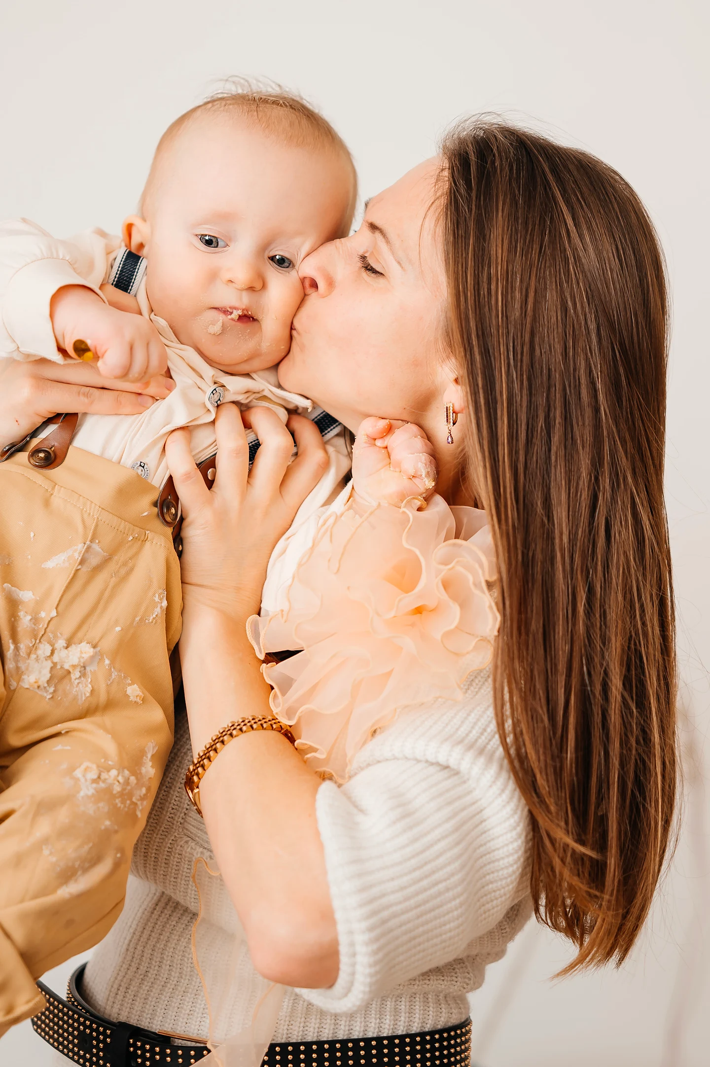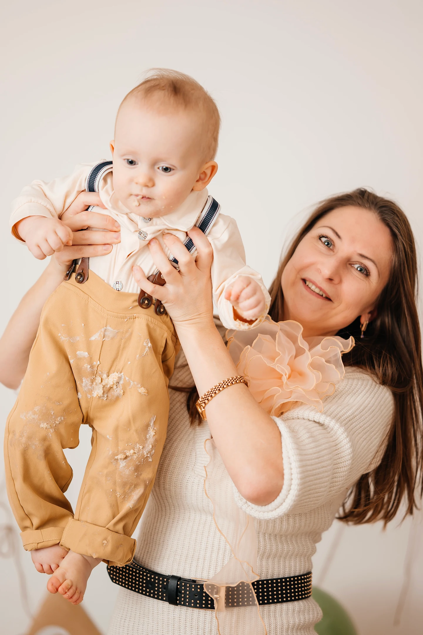 Für ein entspanntes Shooting komme ich direkt zu euch nach Hause – mit Licht, Hintergrund, liebevoller Deko und Luftballons. Den Kuchen bringt ihr selbst mit – am besten weich, bunt und babysicher. So entstehen einzigartige Fotos in eurer gewohnten Umgebung.
