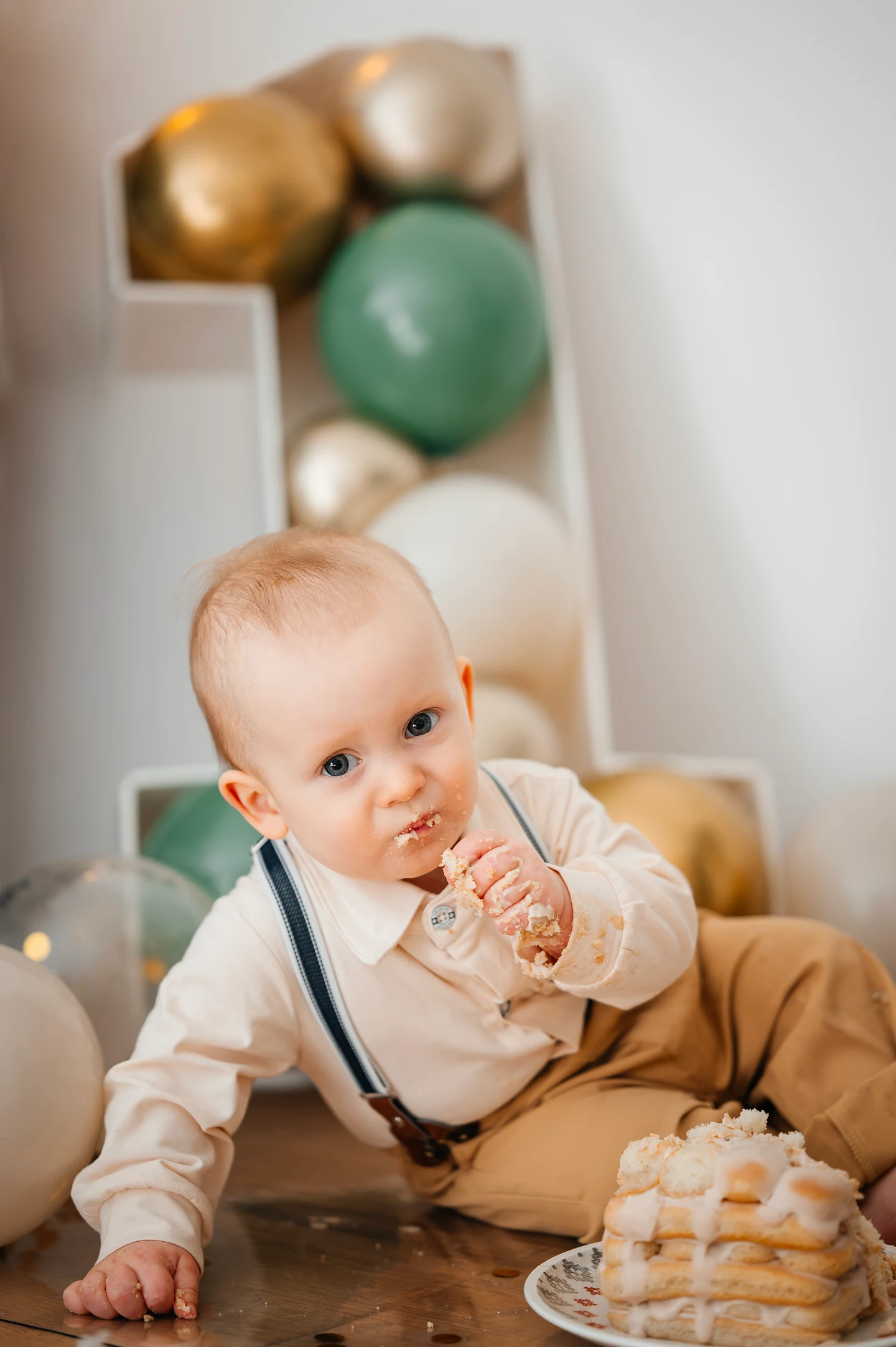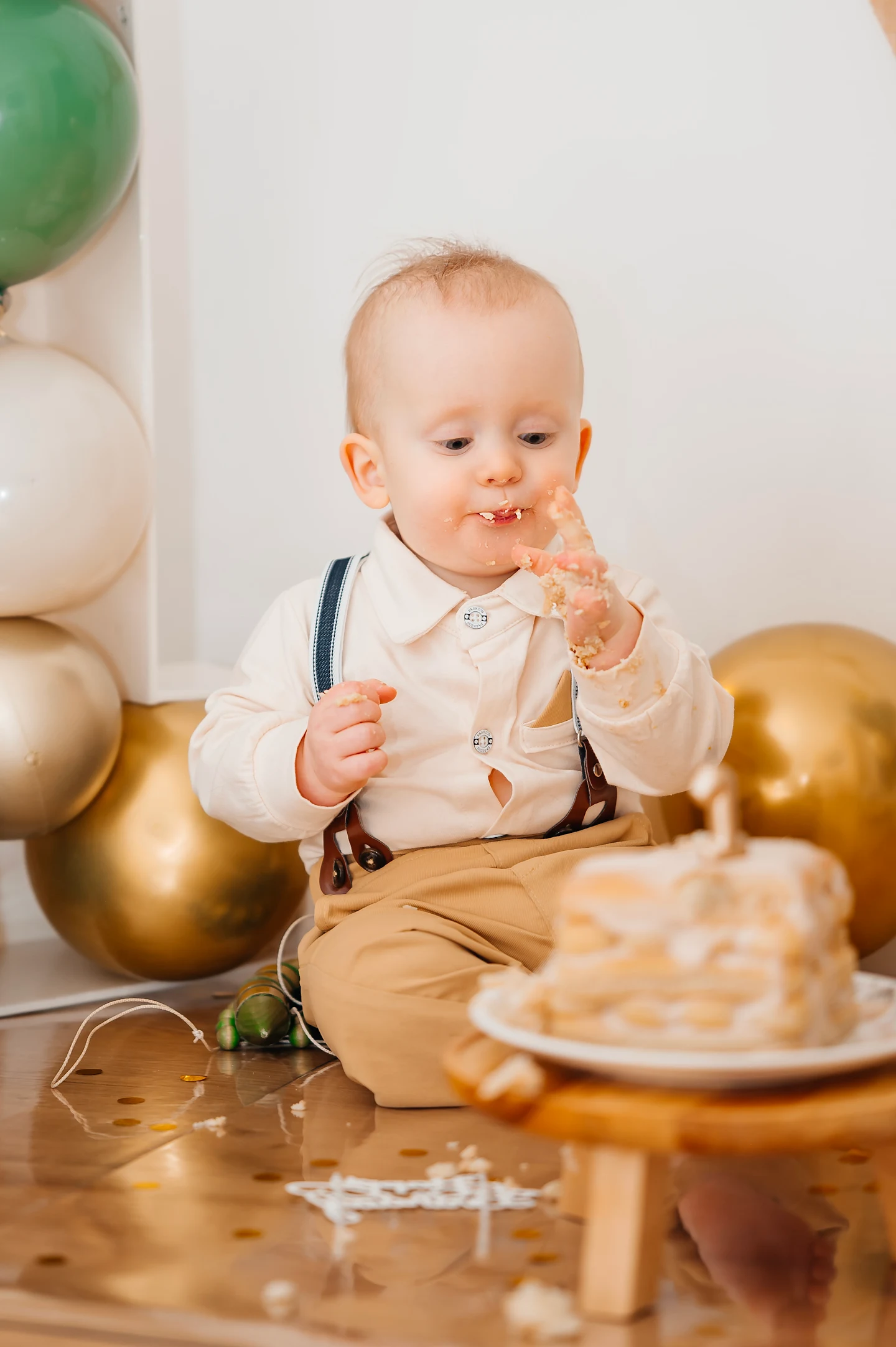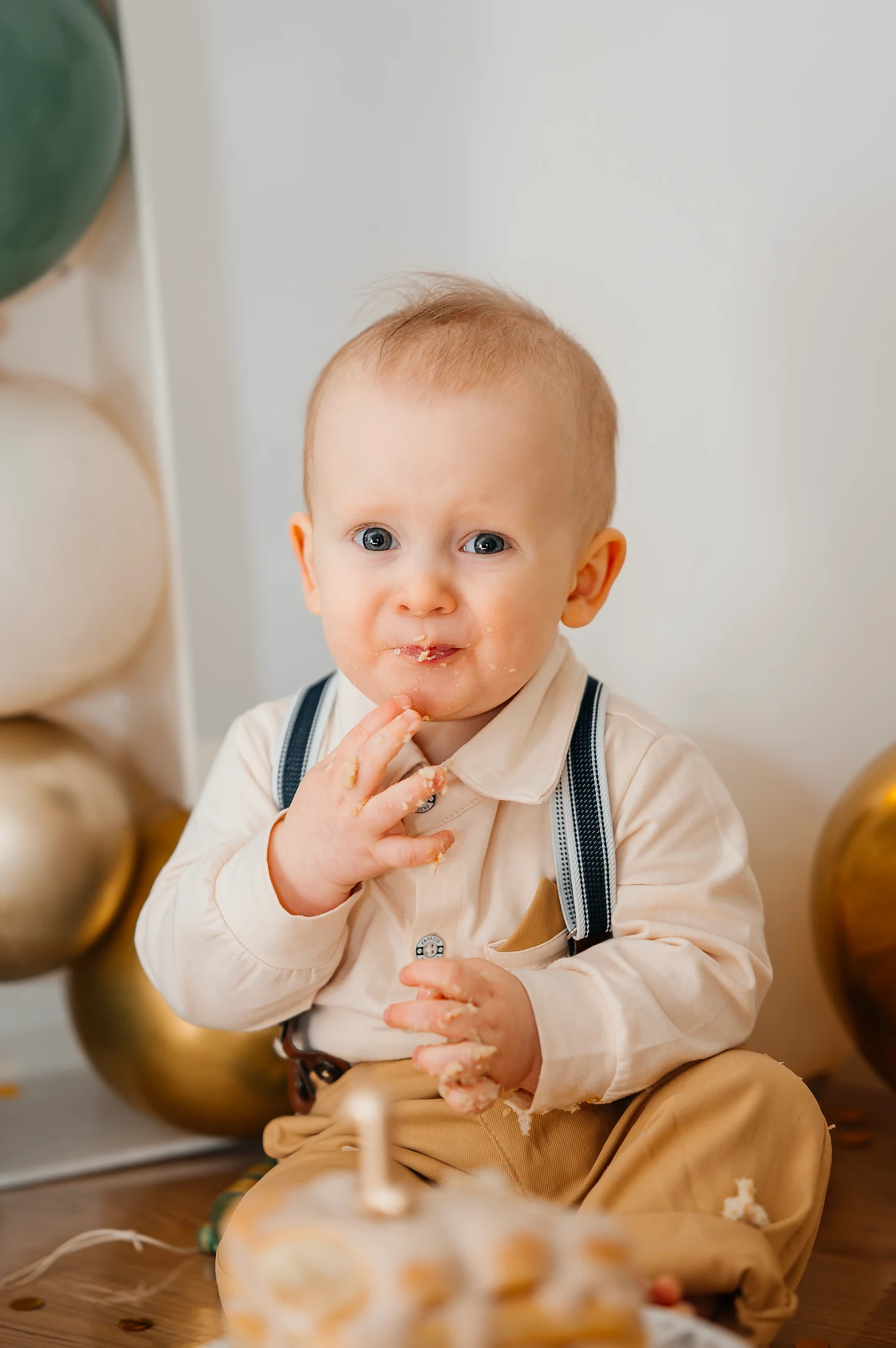 Was für ein Meilenstein: Der erste Geburtstag! Beim Smash Cake Shooting heißt es: Keine Regeln, keine Verbote – nur Spaß! Euer Baby darf den Kuchen mit den Händen erkunden, matschen, probieren und sich voller Freude ins süße Chaos stürzen. Lachen garantiert!